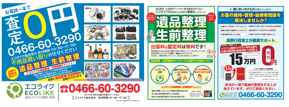 エコライク ECOLIKE ECOライク えこらいく エコライク藤沢 ECOLIKE藤沢 ECOライク藤沢 えこらいく藤沢 出張買取 出張 買取 廃品回収 廃品 回収 不用品買取 遺品整理 生前整理 金 ゴールド プラチナ ダイヤ 宝石 貴金属 ロレックス 時計 腕時計 カメラ ゲーム機 古銭 家電品 藤沢買取 藤沢出張 藤沢出張買取 神奈川県 藤沢市 藤沢 藤沢本町 善行 六会 湘南台 長後 辻堂 茅ヶ崎 平塚 大船 戸塚 綾瀬 瀬谷 大和 ※神奈川全域どこでも出張致します。 |